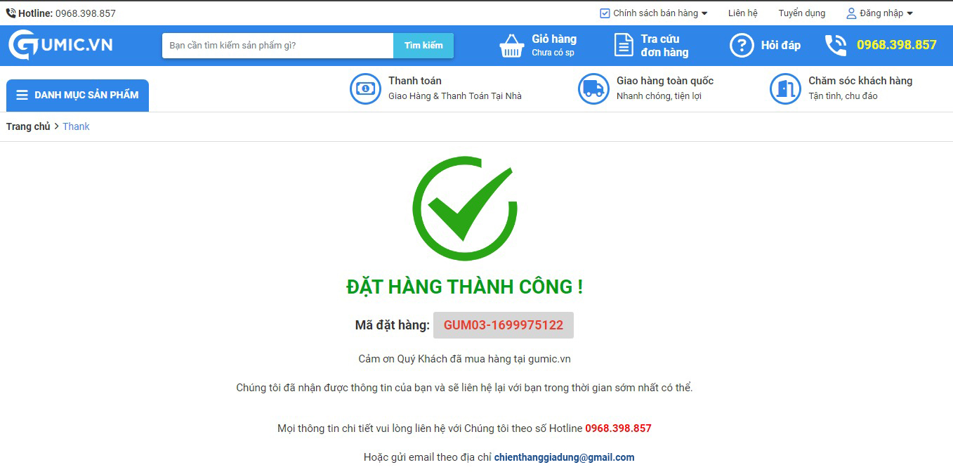 1. Hướng dẫn đặt hàng tại website Gumic.vn