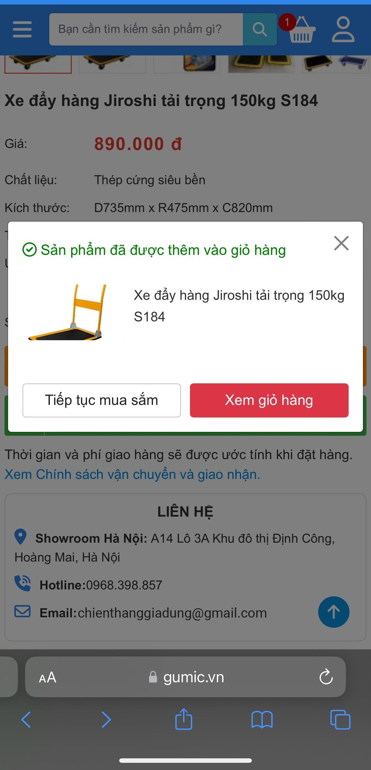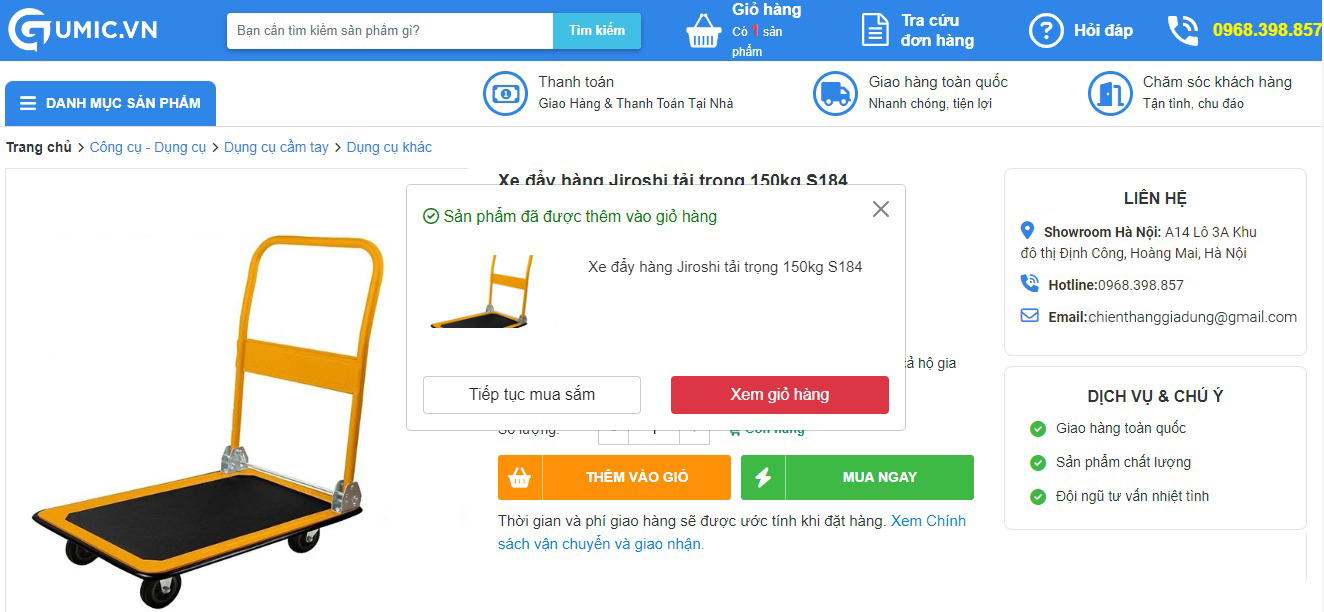 ◆ Bước 2: Click vào nút “GIỎ HÀNG”, Sản phẩm sẽ được đưa vào “Giỏ hàng” của bạn