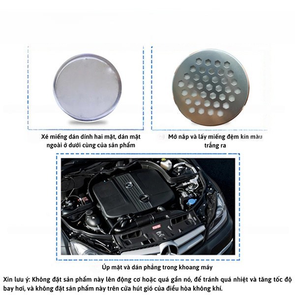 Không đặt sản phẩm này lên động cơ hoặc quá gần nó, để tránh quá nhiệt và tăng tốc độ bay hơi, và không đặt sản phẩm này trên cửa hút gió của điều hòa không khí.