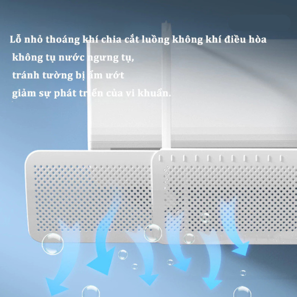 - Cánh chắn có thể kéo dài linh hoạt, phù hợp nhiều loại điều hòa treo tường.